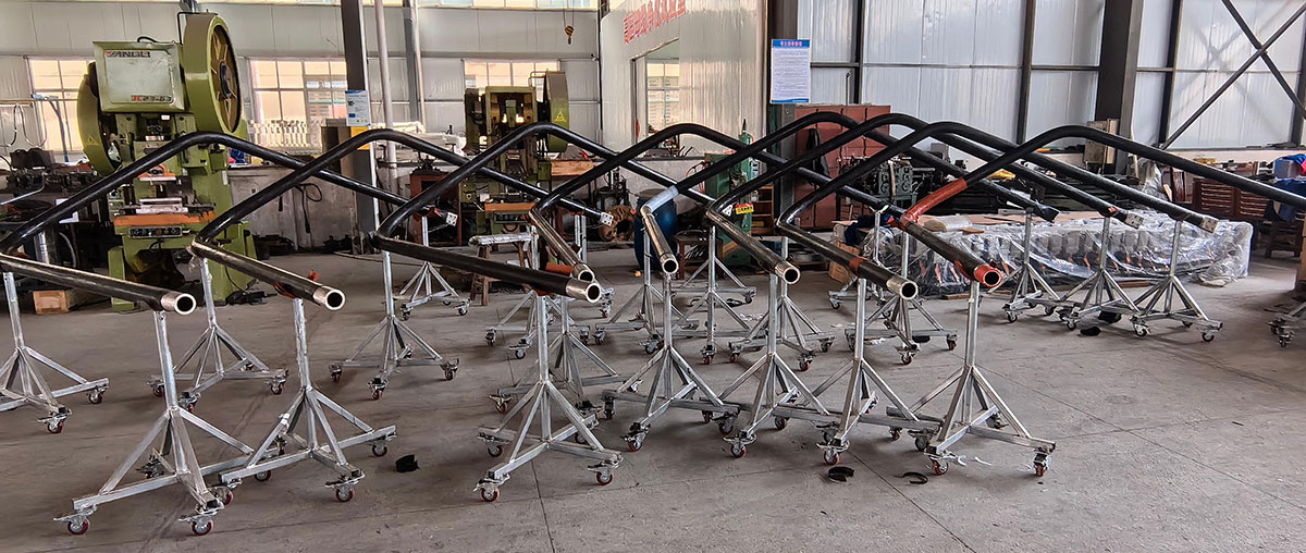 一、 導(dǎo)體精加工1、 材料選用:從倉(cāng)庫(kù)領(lǐng)出經(jīng)入廠(chǎng)檢驗(yàn)合格的銅管,并核驗(yàn)外徑、壁厚尺寸無(wú)誤。2、 導(dǎo)體鋸切:對(duì)照?qǐng)D紙編號(hào)選擇裁切方案,充分利用庫(kù)存規(guī)格,避免浪費(fèi)。鋸切完成的,在表面寫(xiě)上相應(yīng)的編號(hào),用毛刷掏干凈銅管內(nèi)的銅屑。3、 終端頭焊接:焊接前將銅管端頭用坡口機(jī)坡口(45°),用酒精清潔端部,將由本公司車(chē)削加工中心預(yù)制的終端頭內(nèi)襯部分插入銅管端部,采用熱熔焊接方式將終端頭與銅管完整焊接,焊接完成打磨拋光焊接點(diǎn)后進(jìn)行X光探傷檢測(cè)。4、 粘接法蘭:按照不同規(guī)格銅管的要求在適當(dāng)?shù)奈恢谜辰臃ㄌm,在粘接部位銅管表面打磨出50mm寬的毛糙面,并用無(wú)水酒精擦拭干凈毛糙面的灰層和毛屑后涂敷粘接AB膠,法蘭膠固化后將多余的膠打磨掉,以不影響緊固澆注嘴為準(zhǔn)。5、 導(dǎo)體煨彎:對(duì)照?qǐng)D紙,在數(shù)控彎管機(jī)上對(duì)導(dǎo)體進(jìn)行煨彎,彎管后復(fù)核彎管尺寸,長(zhǎng)度誤差≤2mm,角度誤差≤0.5°,煨彎完成后,對(duì)導(dǎo)體表面進(jìn)行去毛刺和氧化層的打磨處理,用無(wú)水酒精擦除表面毛屑后進(jìn)入凈化車(chē)間進(jìn)行下道工序。二、 浸漬紙繞包1、 絕緣皺紋紙和半導(dǎo)體皺紋紙分開(kāi)放在不同的潔凈容器內(nèi),防止混裝造成絕緣紙被半導(dǎo)紙污染(導(dǎo)電顆粒摩擦掉落至絕緣皺紋紙內(nèi))。2、 將導(dǎo)體在工裝支架上懸空支撐,繞包前再次清潔導(dǎo)體表面。3、 由經(jīng)過(guò)崗前培訓(xùn)的操作人員進(jìn)行繞包作業(yè),按照相應(yīng)項(xiàng)目的繞包工藝單列明的屏位尺寸、繞包厚度進(jìn)行繞包(直線(xiàn)和單水平彎母線(xiàn)采用機(jī)械繞包,立體彎母線(xiàn)采用人工繞包),由專(zhuān)職生產(chǎn)過(guò)程檢驗(yàn)質(zhì)檢員檢查屏位是否準(zhǔn)確、檢查繞包松緊度和表面平整度。三、 外護(hù)套熱縮及布帶纏繞1、 根據(jù)電壓等級(jí)、電流大小、母線(xiàn)編號(hào)選擇正確的熱縮套管。2、 根據(jù)母線(xiàn)形狀制定熱縮管裁剪余量,一根母線(xiàn)必須采用整段連續(xù)長(zhǎng)的熱縮套管。3、 套好熱縮管后進(jìn)行熱縮,留下距離法蘭500mm左右的距離暫不熱縮,趁熱纏繞熱縮布袋,熱縮布帶按照2/3搭接,檢查是否有漏纏。待微涼后碼回未經(jīng)熱縮的套管,露出法蘭在法蘭上安裝注膠嘴后補(bǔ)打法蘭膠(138/998膠組)。在法蘭膠未固化前把熱縮管抻出來(lái)進(jìn)行熱縮,纏繞布帶,上喉箍,連接三通。在布帶表面標(biāo)注母線(xiàn)編號(hào)。四、 真空澆注1、 一批次母線(xiàn)外護(hù)套熱縮并布帶纏繞完成后,放入熱風(fēng)循環(huán)固化烘箱進(jìn)行抽真空及注澆注料管線(xiàn)連接,進(jìn)出料管線(xiàn)需與母線(xiàn)編號(hào)一致,進(jìn)料端管線(xiàn)需在爐內(nèi)卡死,防止水分蒸發(fā)到爐外。2、 常溫至105℃升溫,固膠,干燥水分,此過(guò)程設(shè)定為240分鐘(4小時(shí))。3、 保持105℃,并對(duì)母線(xiàn)皺紋紙層間進(jìn)行干燥、抽真空,持續(xù)1800分鐘(30小時(shí))。該過(guò)程先啟動(dòng)冷水機(jī),然后啟動(dòng)旋片泵,觀(guān)察真空度,60分鐘內(nèi)真空度達(dá)不到2000Pa以?xún)?nèi),則需檢查漏點(diǎn),排除故障。300分鐘內(nèi)真空度將達(dá)到1000Pa以?xún)?nèi),則基本排除漏點(diǎn)存在的可能。從升溫開(kāi)始1200分鐘后,真空度應(yīng)達(dá)到300Pa以?xún)?nèi),此時(shí)需緊固一次母線(xiàn)的法蘭抱箍,同時(shí)可以對(duì)母線(xiàn)進(jìn)料端進(jìn)行抽真空,當(dāng)母線(xiàn)真空度維持在100-300Pa之間時(shí),無(wú)需啟動(dòng)羅茨泵,在第二個(gè)工作日下班前對(duì)環(huán)氧樹(shù)脂進(jìn)行預(yù)熱,為第二天拌料做準(zhǔn)備,注意觀(guān)察預(yù)混缶內(nèi)料的數(shù)量,保證滿(mǎn)足相應(yīng)母線(xiàn)的澆注用量。4、 爐溫從105℃降至65℃,在65℃時(shí)進(jìn)行恒溫澆注操作,澆注的時(shí)間段時(shí)長(zhǎng)不固定,以全部產(chǎn)品完全浸漬飽和為目標(biāo),一般時(shí)長(zhǎng)不超過(guò)600分鐘(10小時(shí)),否則進(jìn)料端環(huán)氧樹(shù)脂由于長(zhǎng)時(shí)間處于室溫狀態(tài),粘稠度變大,浸漬過(guò)程將變得非常緩慢。5、 澆注好的母線(xiàn)靜置大約40分鐘左右,以利于皺紋紙完全吸收,然后進(jìn)行二次給料,先開(kāi)進(jìn)料閥,后松出料端卡箍,待出料端樹(shù)脂料進(jìn)入料杯50mm以上高度時(shí),用卡箍卡死出料管,然后關(guān)閉所對(duì)應(yīng)的進(jìn)料閥門(mén)。待一爐內(nèi)所有的母線(xiàn)都澆注完成后,,關(guān)閉出料閥,并注意檢查每個(gè)出料閥都處于完全閉合狀態(tài),防止排放壓力容器中的樹(shù)脂料時(shí)空氣進(jìn)入母線(xiàn)內(nèi)部,造成產(chǎn)品損壞。6、 以上工作完成后,關(guān)閉預(yù)混料缶的加熱,再關(guān)掉真空機(jī)組以及冷水機(jī),打開(kāi)本烘箱管道上所有沒(méi)有接產(chǎn)品的閥門(mén),排凈管道和料杯內(nèi)的負(fù)壓,然后關(guān)掉有料料杯的閥門(mén),取下所有出料管上的卡箍,母線(xiàn)澆注完成。7、 排出進(jìn)料端管路中環(huán)氧樹(shù)脂和固化劑混合后的余料,利用負(fù)壓吸入清洗液對(duì)管路進(jìn)行清洗,清